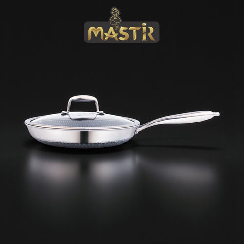 Mastir Stainless Steel Frypan with Lid – Hybrid Honeycomb Nonstick, PFOA-Free & EU Approved – Healthy Cooking Pan, Stay-Cool Handle, Induction & Oven Safe – 24/26/28 cm